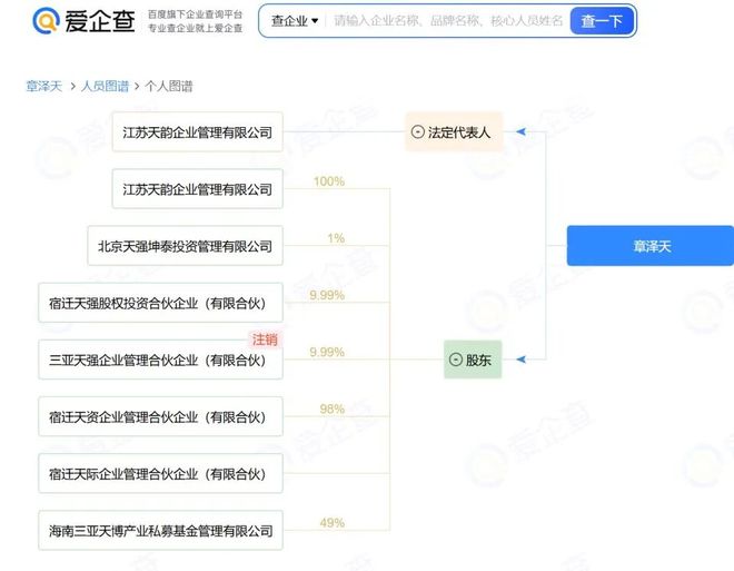 与此同时,爱企查App显示,章泽天关联9家公司,8家为存续状态,多担任股东、董事长等职务,行业涉及文化艺术、资本市场服务等。