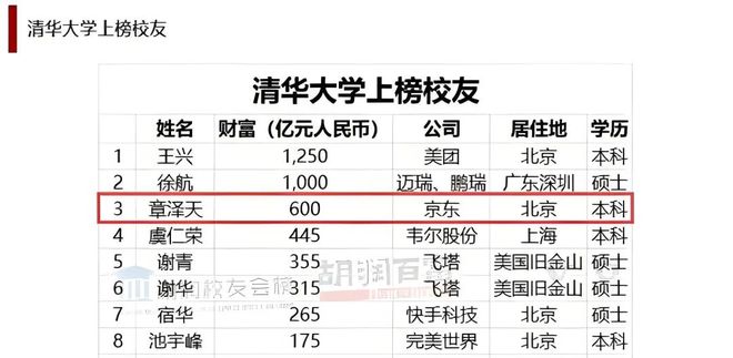 2024年1月,胡润研究院发布《胡润校友会榜》,章泽天以 600 亿身家位列清华校友富豪榜第三。