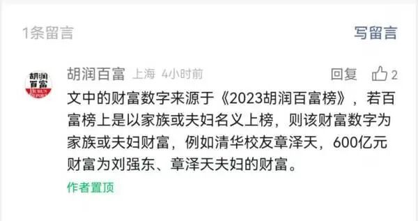 当然,胡润解释说明了,600亿是刘强东和章泽天夫妇的财富,他们是以夫妇名义上榜。