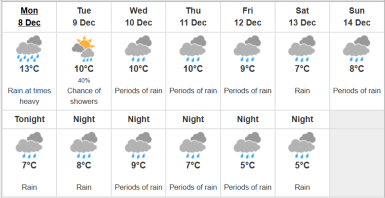 周一的暴雨并非是大温本周唯一的大雨,ECCC的预报显示,今天开始的一周基本全是下雨。