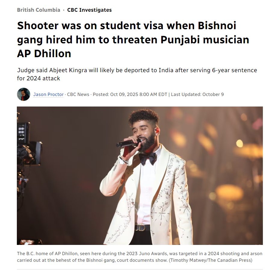 法院聽證會(此前受出版禁令保護)揭露,Sharma與共同被告 Abjeet Kingra 被指在印度跨國犯罪集團 Lawrence Bishnoi幫派 指使下,襲擊旁遮普音樂明星 AP Dhillon 位於溫哥華島的住所。