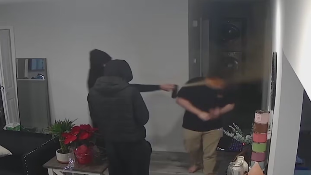 视频显示,两名买家走进屋内,询问一些看似普通的问题。当阮转过身准备将电脑打包时,其中一人突然掏出胡椒喷雾,直接喷向阮的脸和眼睛。