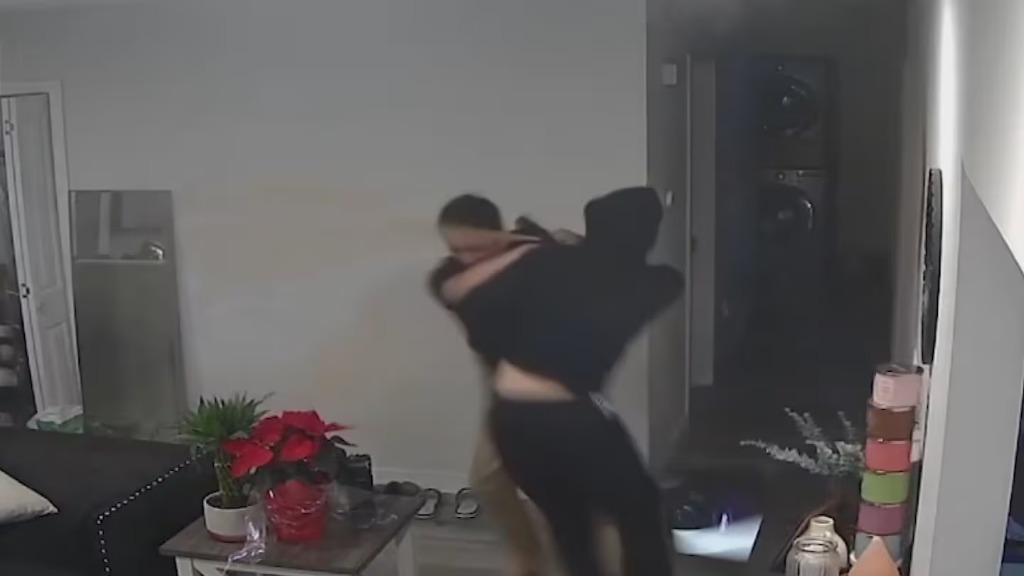 与此同时,阮的妻子奥听到一声巨响,从另一个房间跑了进来。