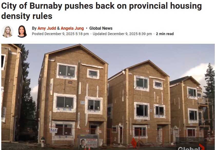 (加西網綜合)本那比市似乎正對BC省政府要求增加住房密度的新規定有所抵觸。