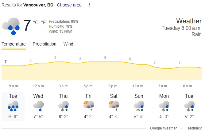 溫哥華,當天最高氣溫達到 15.7 攝氏度,打破了 63 年前(1962 年)13.3 攝氏度的紀錄。