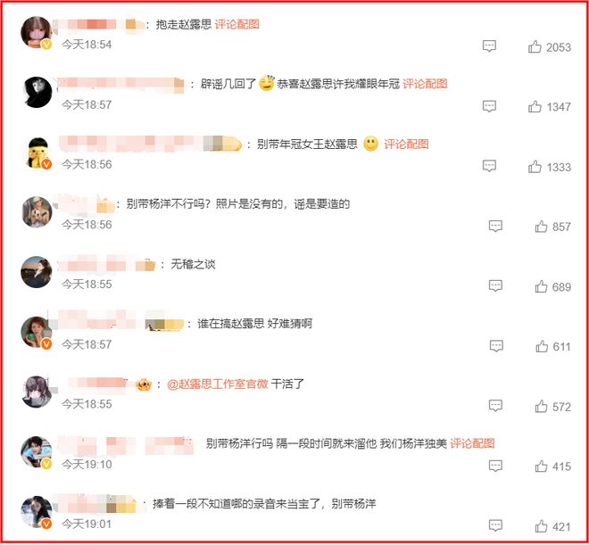 可以看到不管是杨洋的粉丝,还是赵露思的粉丝,都对这个爆料很不满。
