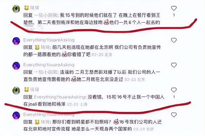 甚至还有网友扒出杨洋疑似吃醋的行为。网友扒出赵露思在和一名男演员嬉笑打闹时,杨洋突然过来站在赵露思面前,将她的脑袋扶正,不让她再和那位男演员打闹。这在不少网友看来是杨洋吃醋的表现。