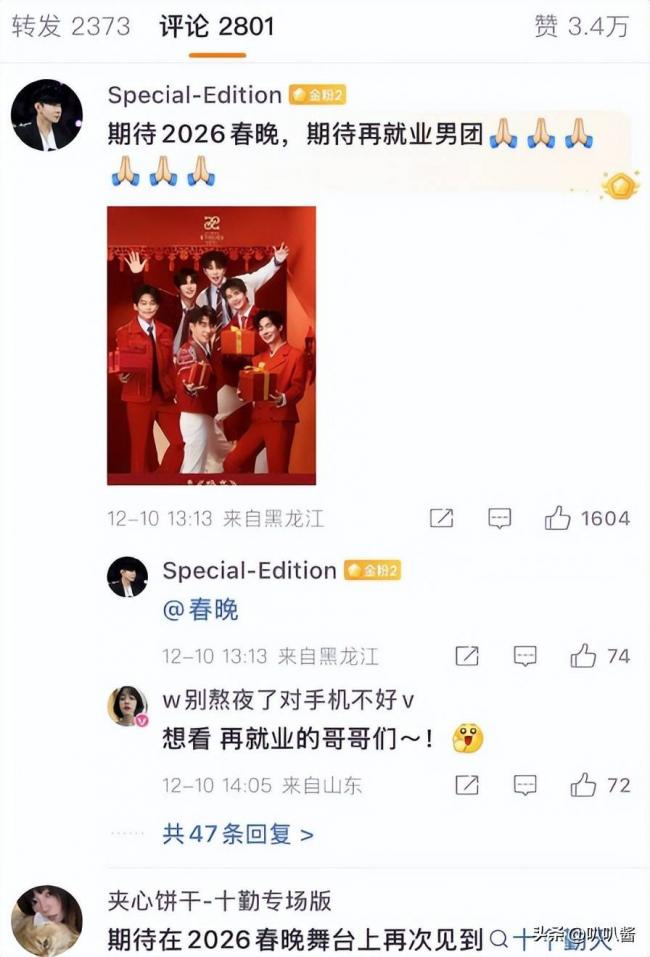 春晚官号甚至在社交平台上官宣节目征集,这是春晚第一次采取这种方式征集节目。