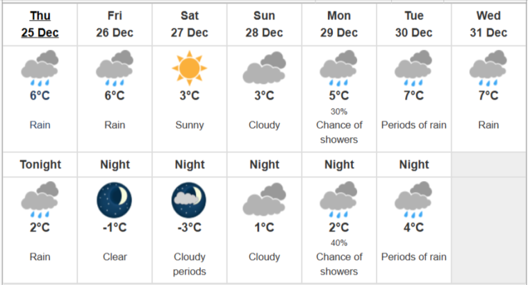 预计部分地区傍晚将有湿雪和降雨,持续到节礼日早晨,然后到周五下午开始逐渐减弱。