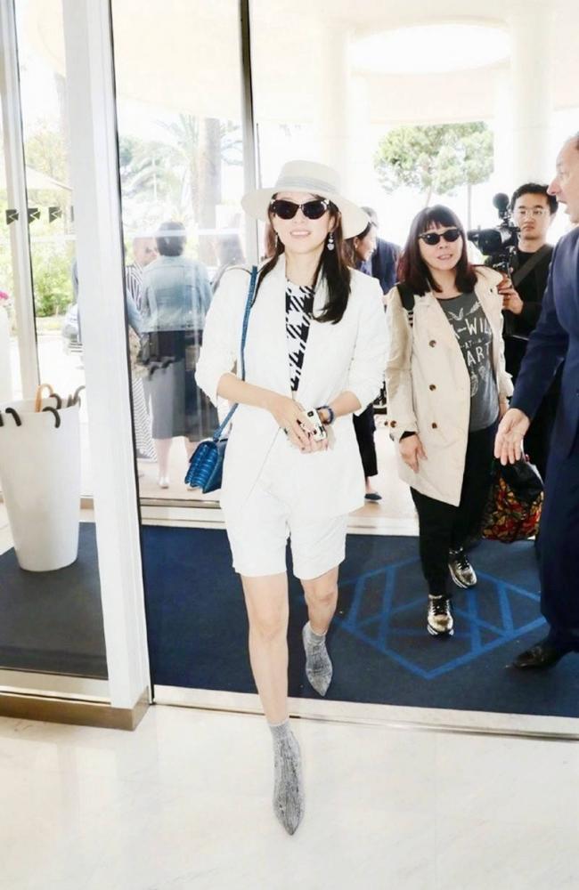 其二,西裝配短褲,凸顯長腿優勢,別致個性。離婚後的章子怡穿搭風格上愈發大膽多元,其中西裝配短褲的造型堪稱“驚艷出圈”。她曾身著白色寬松西裝,內搭露腰條紋吊帶,下身搭配同色系寬松短褲,腳踩灰色尖頭皮靴,整體造型簡約卻極具設計感。