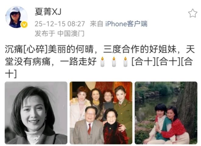 在電影《紅樓夢》中飾演賈寶玉的夏菁,悼念何晴。