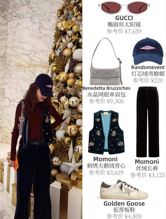 大家最先热议的是她的穿搭,里面是酒红色长袖,外面搭一件刺绣丝绒马甲,款式随性却有设计感,全身上下几乎没有扎眼的 logo。