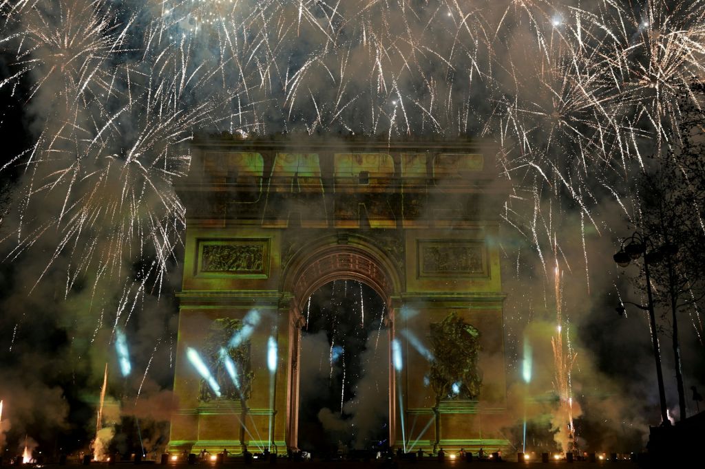 此外,在法國巴黎,大量民眾聚集在香榭麗舍大道。從晚上11時到深夜,凱旋門皆上演燈光秀和投影。午夜鍾聲響起時,絢麗的煙火將整座城市點亮,絢麗多彩。