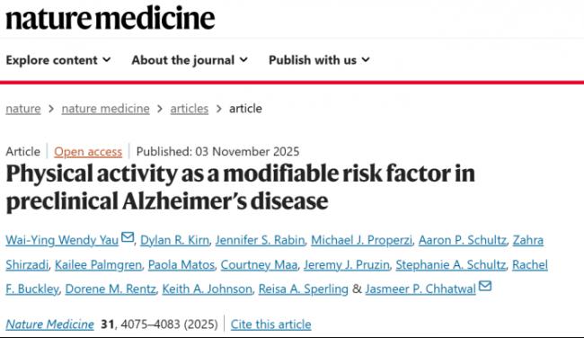 他们分析了近300名年龄50至90岁、认知正常但部分大脑已有病理改变的参与者数据,佩戴计步器记录每日步数,结合脑部PET扫描和认知评估,进行纵向研究。