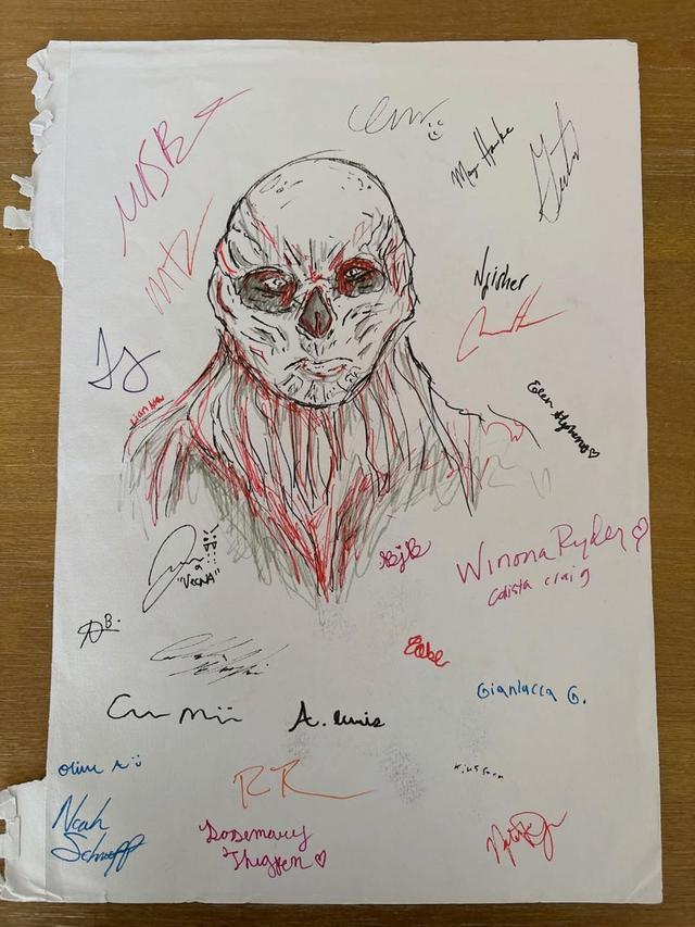 连恩阿斯丘画了一张「威可那」素描,旁边有演员们的签名。(翻摄liammontgomeryaskew IG)
