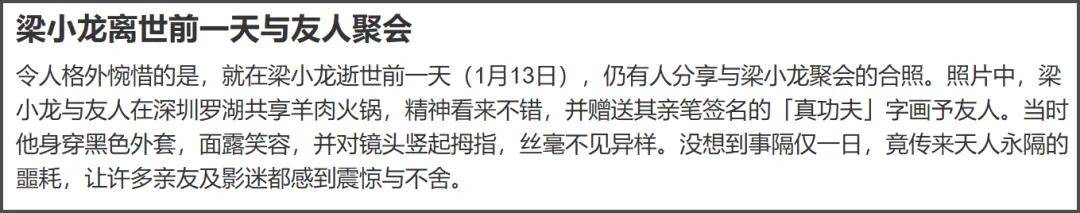 没想到才过去两年的时间,梁小龙就突然离世。去世前一天还和朋友在深圳聚会吃火锅,没想到第二天就离开人世。