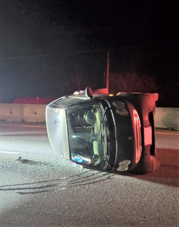 警方在一份聲明中表示,1 月 16 日晚上 11 點左右,一名司機打電話報警,稱在Lougheed 高速公路西行車道靠近Hayward Street的路段上,有一輛黑色 Smart 汽車側翻。