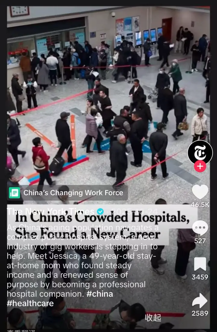 〓 圖注:《紐約時報》也捕捉到了陪診師這一職業現象