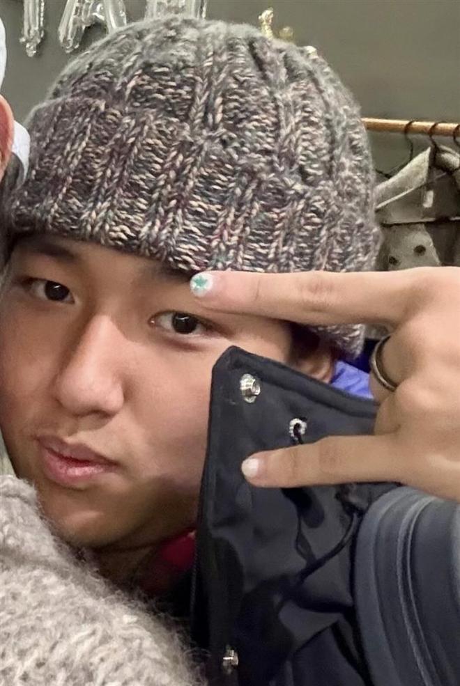 白百合和大儿子合影,19岁元宝戴帽子像小老头