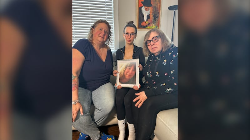 摩根·罗斯(中)拿着斯泰西·罗斯的照片,斯泰西·罗斯于 1 月 15 日去世。(CTV)