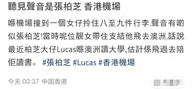 今天(2月2日)凌晨,有網友分享了在香港機場偶遇張柏芝的動態。網友說,看到張柏芝一個人拿著八九件行李,還背著一個吉他飛澳洲。想到他的大兒子Lucas剛去澳洲讀書,覺得她是去陪讀的。