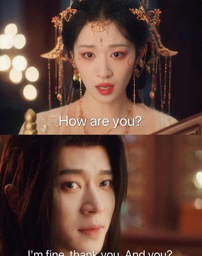 直到一个镜头猝不及防闯进视线——两位华服锦袍的古人,背着手、压低嗓音,一本正经对起英文:“How are you?”“I’m good, thanks. And yourself?”我当场定住,这哪是拍戏?分明是跨次元接头现场!