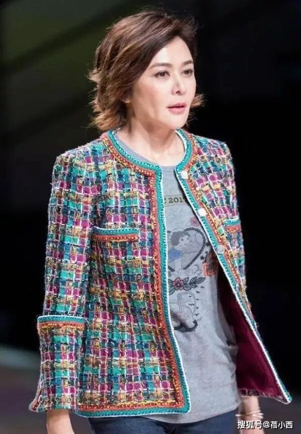 关之琳身着一身彩色粗花呢外套走上T 台时,全场的目光瞬间被她牢牢吸引,不同于机场造型的松弛随性,这次她以知性优雅的姿态诠释了成熟女性的多元魅力,用一件复古又华丽的外套,打破了大众对 “中年穿搭” 的所有刻板印象。