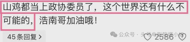“山鸡哥”变身“泰铨委员”的反差实在太大,有网友调侃:“山鸡哥完成了从江湖到基层的华丽转身,现在是扎根基层的‘山基’了!”