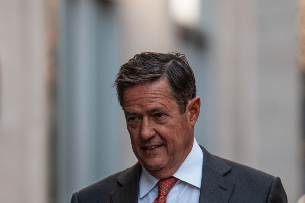 2025年4月2日,巴克萊銀行前執行長Jes Staley午餐後返回倫敦高等法院,出席結案陳詞。此前,英國金融行為監理局(FCA)於2023年做出決定,因Staley與愛潑斯坦的關系禁止其擔任金融業的高階職位。(Carl Court/Getty Images)