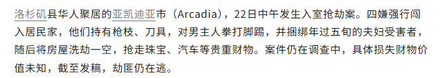 去年,阿凯迪亚豪宅内,一对华人夫妻大白天遭入室抢劫,损失惨重。