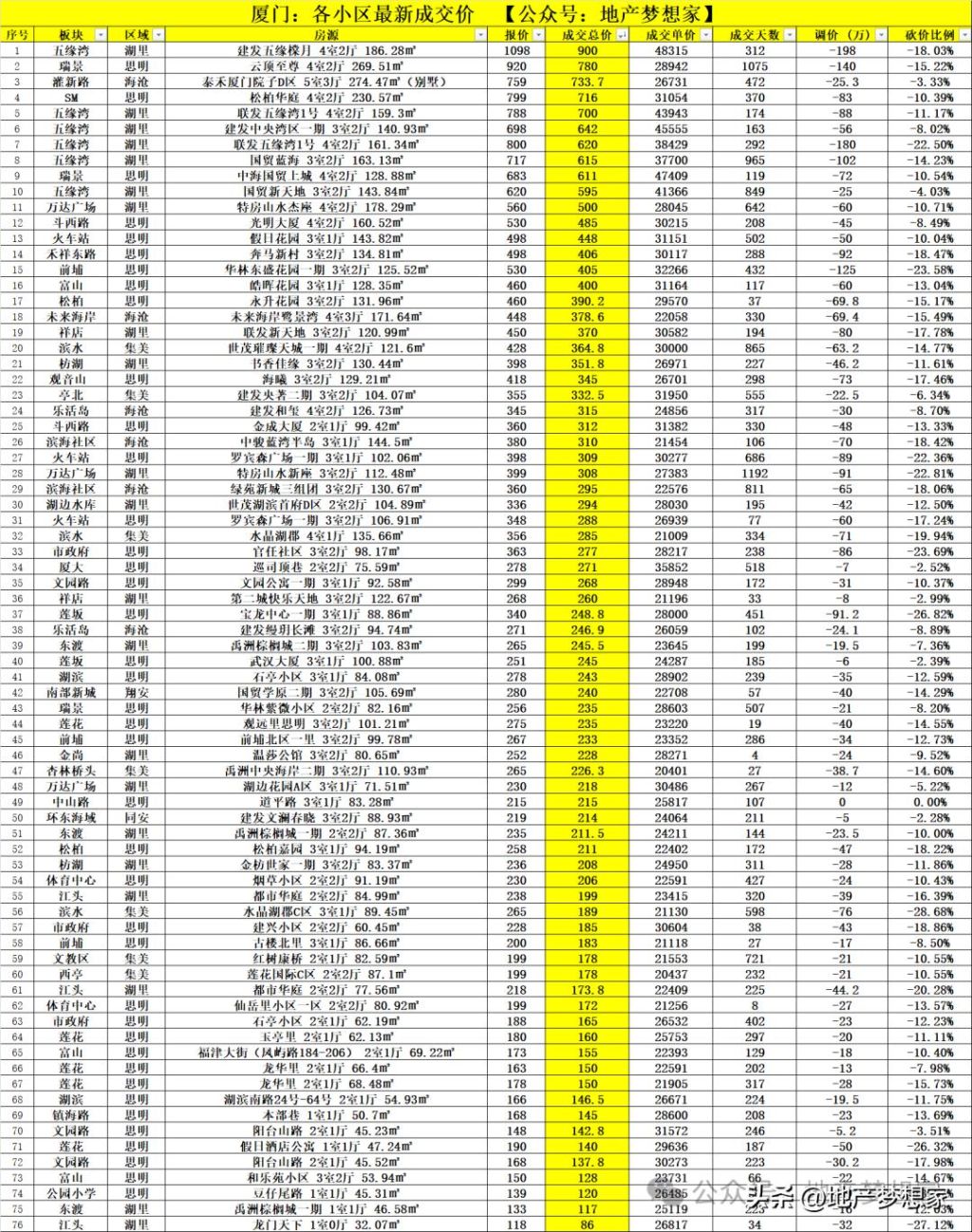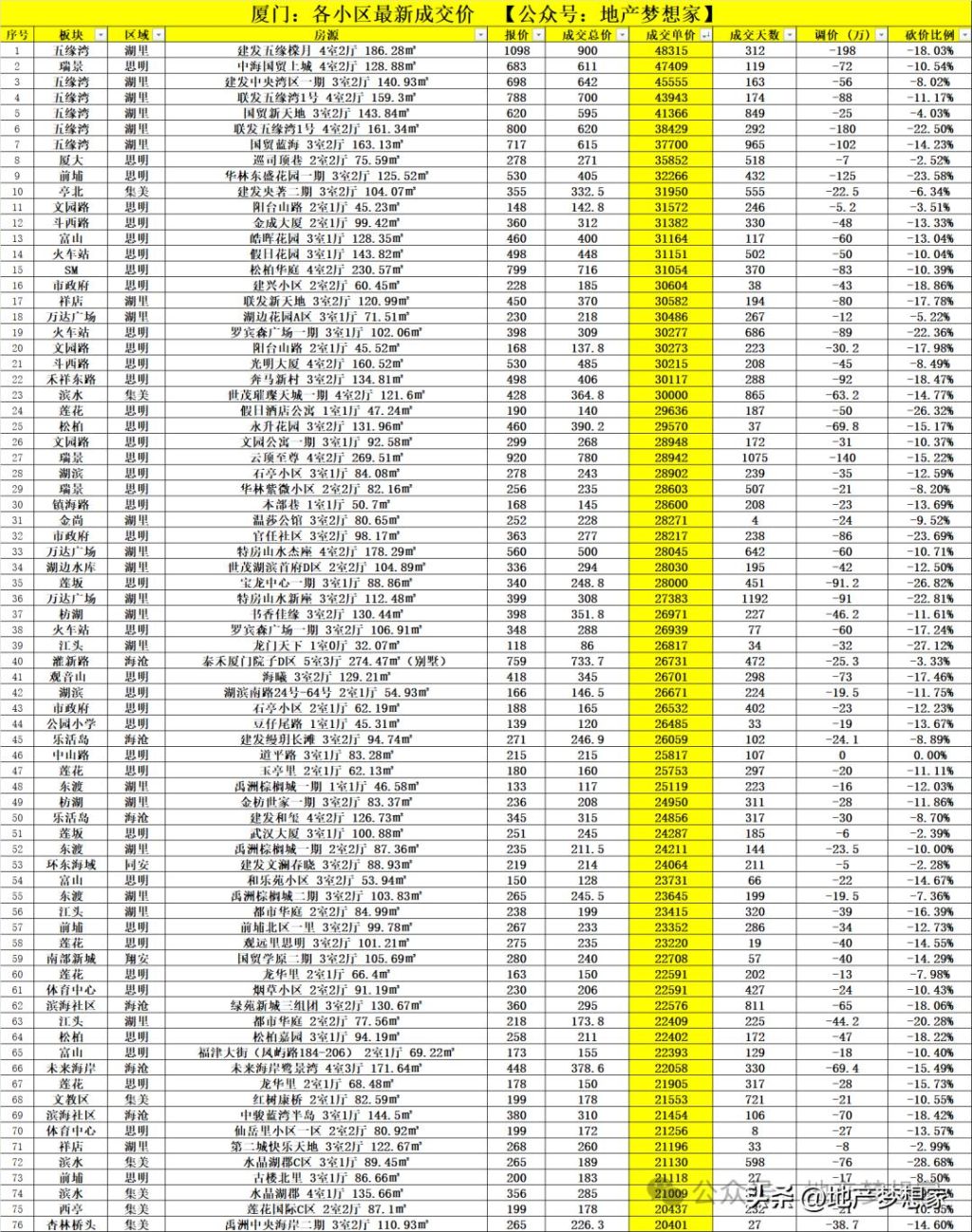 中央湾区、联发五缘湾1号等项目,成交单价4.3-4.5万/㎡。