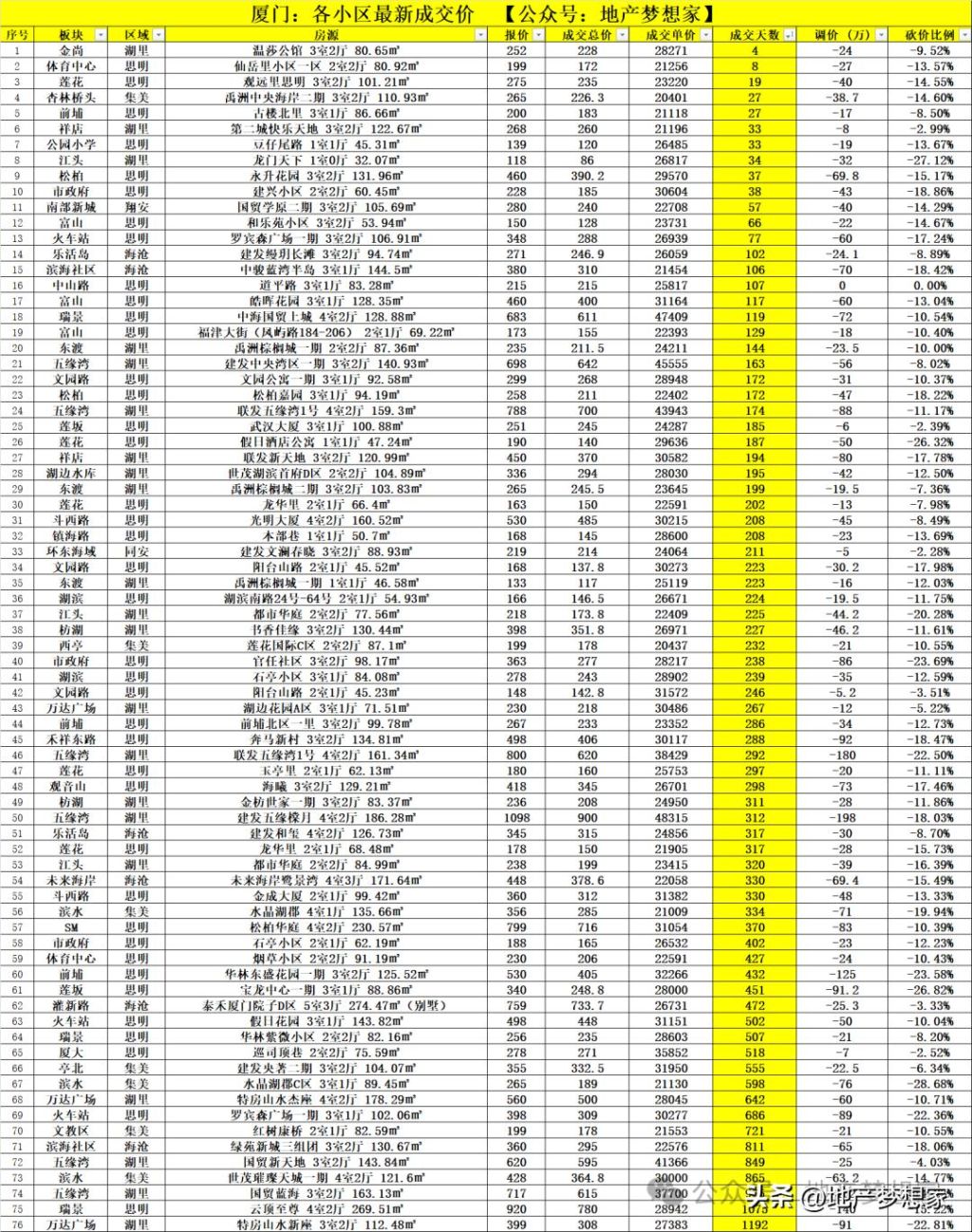 五缘湾板块毫无悬念地占据榜首。