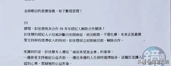 經紀人小恬的病情本不嚴重,無需化療,還主動向彭佳慧表示能繼續工作,卻換來如此回應,傷心之余頻頻向友人吐苦水。