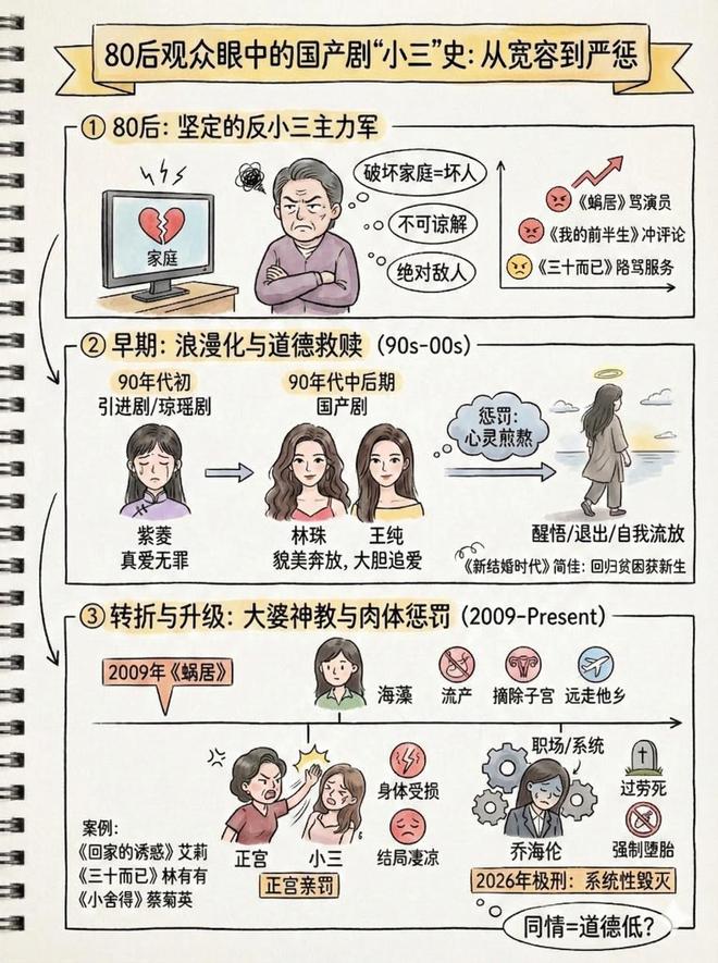 “小三就是小三,哪個小三沒苦衷,破壞家庭就是不對。”——這是80後觀眾的主流態度。