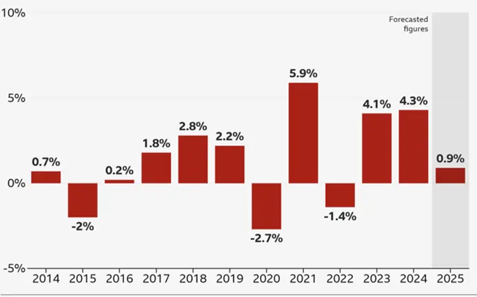 然而,這一勢頭在2025年遭遇逆轉,該年的國內經濟總值(GDP)增長保持在1%左右。這似乎表明,俄羅斯經濟存在“硬著陸”風險。