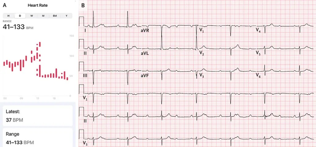 根据《纽约邮报》的报道,威尔康奈尔医学院及纽约长老会医院的心脏科医生詹姆斯·伊普(James Ip)在报告中指出,男子收到警报后,立即使用智能手表及家用血压计交叉核对数据,确认心率降至危险水平——平均每分钟42次(BPM),远低于其平时夜间约72次的水平。一般成年人正常静息心率为每分钟60至100次。