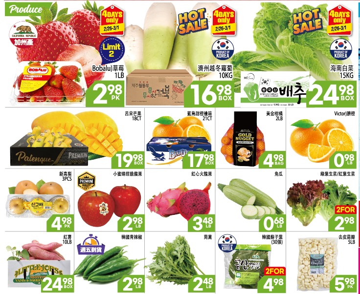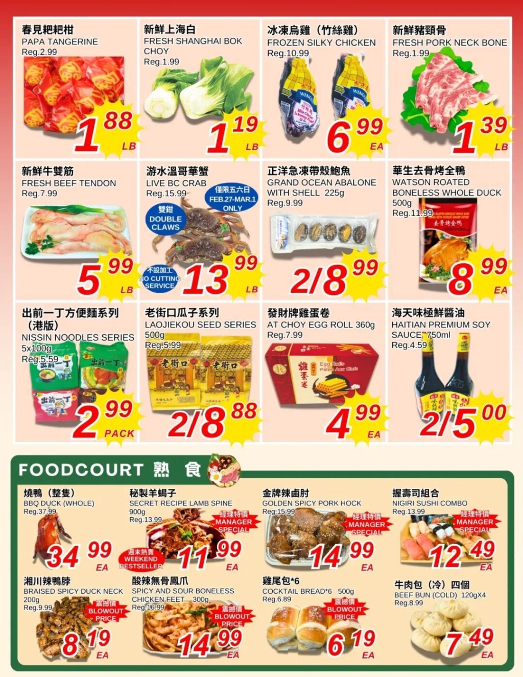 中國世界超級市場(RICE WORLD SUPERMARKE)列治文分店-- 本周特價:2月27日至3月05日