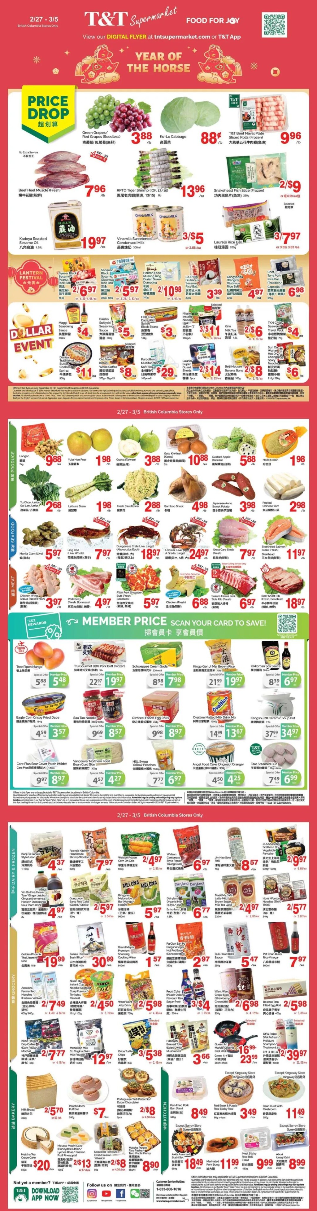 大統華T&T 超市BC省分店- 本周特價:2月27日至3月05日