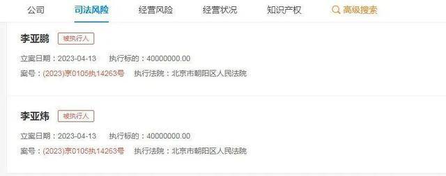 李亞鵬還債的艱難有目共睹,而作為公司股東的李亞煒,也被一同列入限高名單,處境艱難。