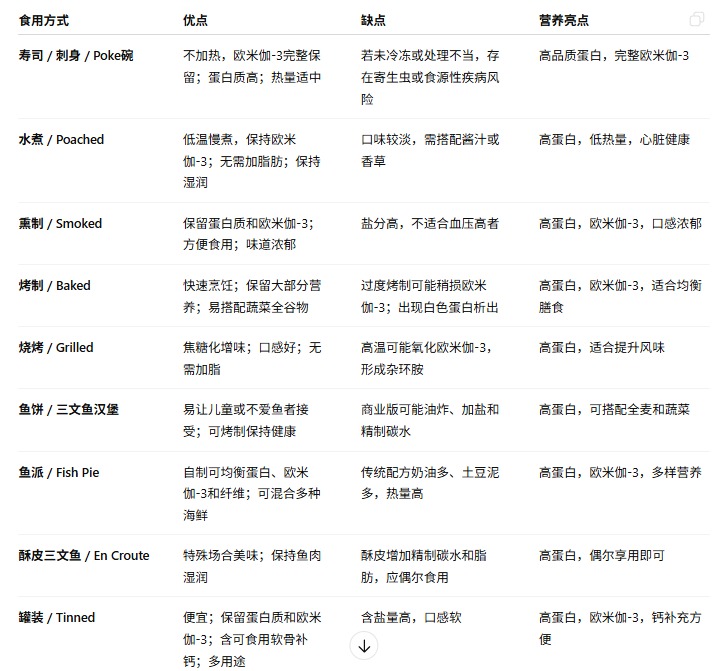 各種三文魚吃法的優缺點和營養特點
