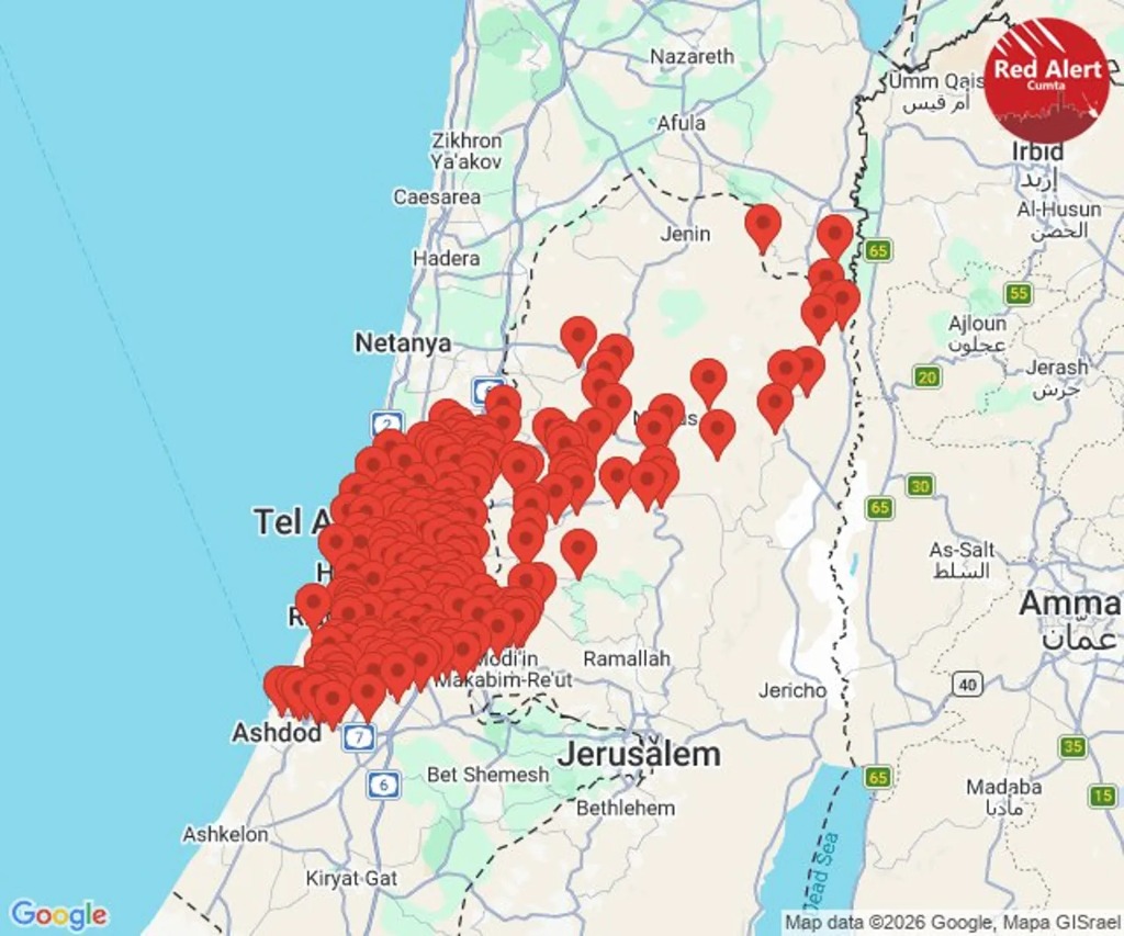 ■ 伊朗向以色列發射彈道導彈後,特拉維夫、以色列中部和約旦河西岸地區響起警報。以色列北部、戈蘭高地和約旦河西岸的約旦河谷地區也響起了無人機警報。