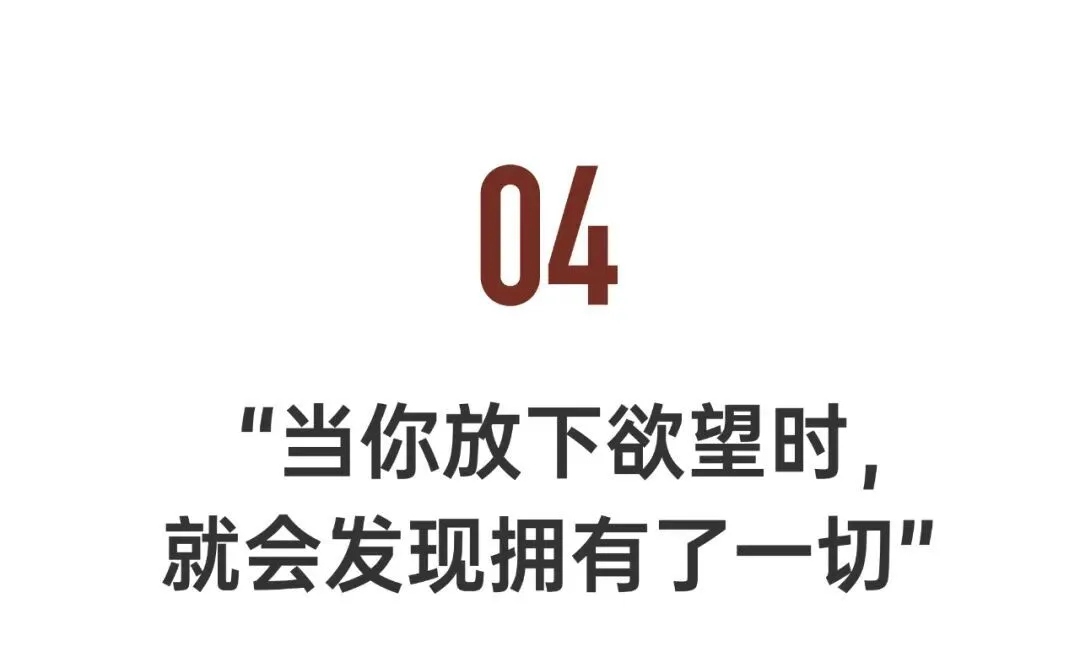 ÏÖÔÚÎÒ²»»áÏëҪ̫¶à¶«Î÷£¬¾ÍÊÇÂòÑÕÁÏ£¬´æÒ»Ð©Ç®ºÍÆÞ×ÓÈ¥ÂÃÐС£ÎÒÖ»ÐèÒªÒ»¸ö×ÔÈ»µÄ¡¢¹»Éú»îÓõĻ·¾³£¬¾ÍÄܸе½ºÜÂú×ã¡£ÒòΪµ±ÄãÕæÕý·ÅÏÂÄÇЩ¶àÓàµÄÓûÍû£¬¾Í»á·¢ÏÖ£¬ÆäʵÄãÒѾ­ÓµÓÐÁËÒ»ÇС£