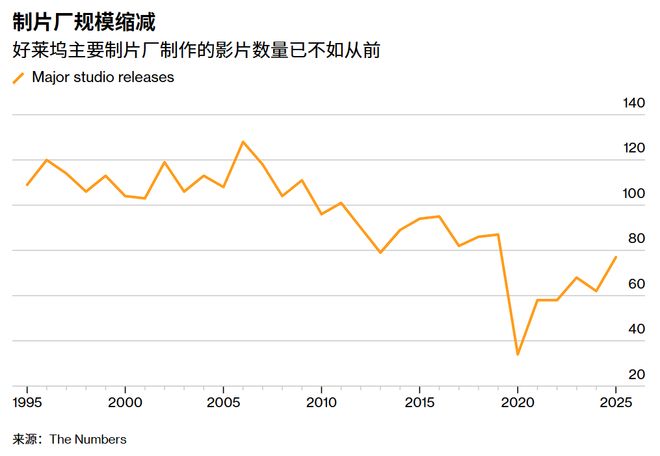 這反映了頭部制片廠的萎縮。自21世紀初以來,好萊塢六大主要制片廠發行的電影數量下降了約35%。曾經的主要制片廠二十世紀福克斯,現在只是迪士尼的一個部門,每年僅制作屈指可數的幾部電影。曾經每年發行約15部電影的派拉蒙,在近十年的時間裡都沒有超過10部。環球影業和索尼影業是僅有的維持產能或增產的制片廠。
