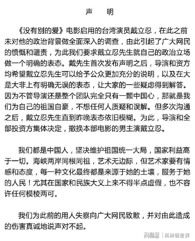 不過劇組反應及時,7月15日宣布更換男主,與戴立忍撇清關系,緊接著官宣由耿樂補拍男主戲份。