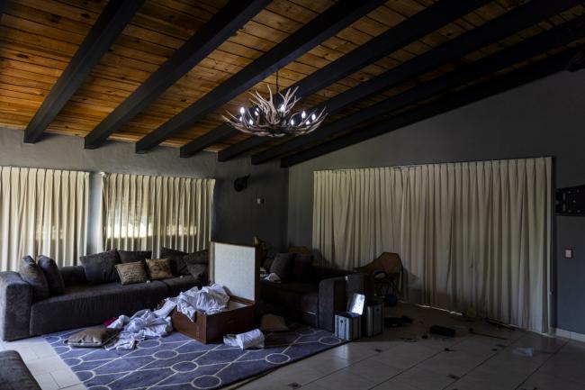 在房子下方几百码处,是一个有大约10间空置周末小屋的封闭式社区。枪战三天后,社区大门敞开,窗帘在微风中飘动。衣服、药品、食物、鞋子、毯子和床单散落在房子的地板和桌子上,表明这是一场仓促的搜查。