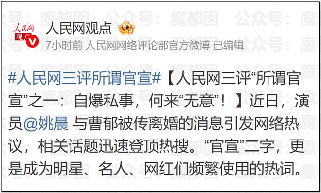 姚晨: 刺激!姚晨再次要凉?人民网下场怒批其官宣离婚实则另有目的!