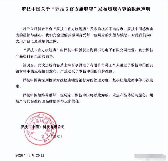 面对愈演愈烈的舆论危机,罗技中国在3月26日深夜23点发布了致歉声明,可这份声明不仅没有平息怒火,反而因为"甩锅式"的表述让舆论二次爆发。