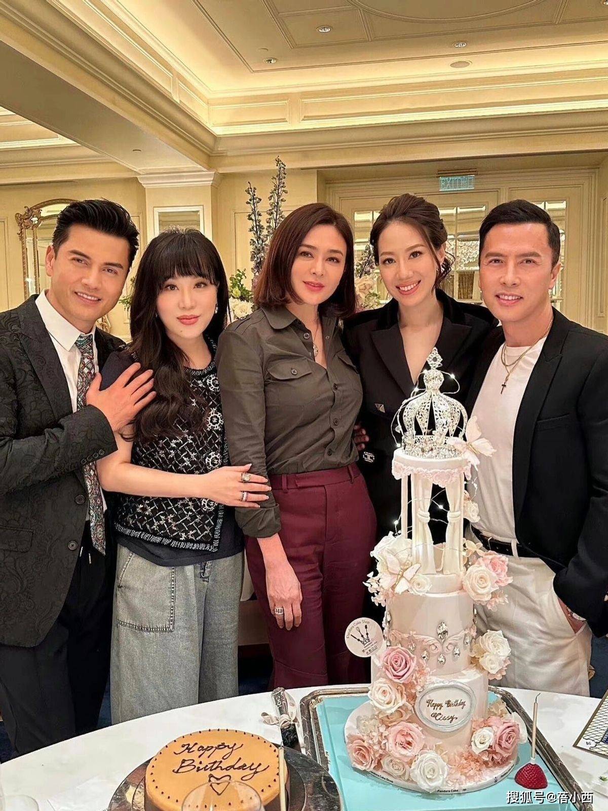 63岁"关之琳"与吕良伟豪宅内聚会,穿衬衫喇叭裤