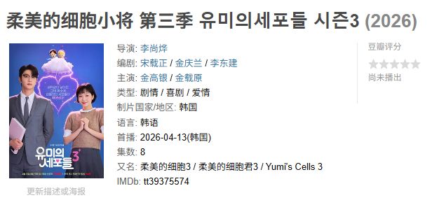 这部高分热门韩剧也迎来第三季。看点依然是金高银饰演的柔美,与她脑内那些可爱细胞小将们的奇妙互动。