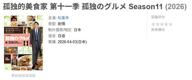 五郎的下饭神剧时隔三年半回归,4月3日深夜开播。喜欢美食剧的朋友还是可以继续追的。